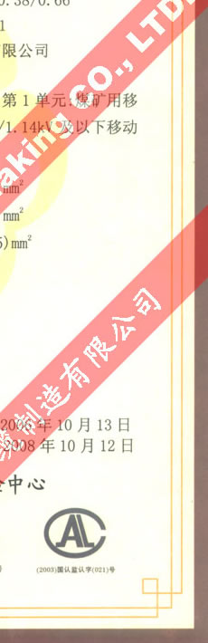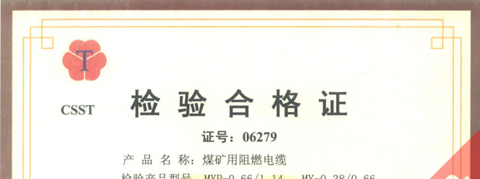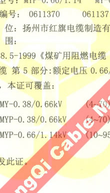 國家采煤機械質(zhì)量監(jiān)督檢驗中心檢驗合格證--煤礦用阻燃電纜(MYC-0.66/1.14,MY-0.38/0.66)