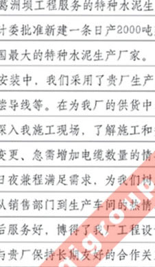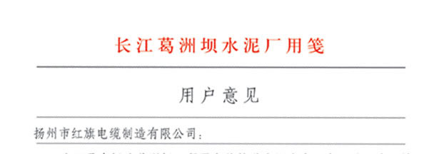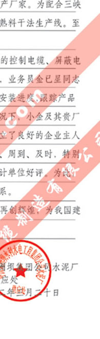 長江葛洲壩水泥廠對我公司服務熱情、交貨及時、產(chǎn)品質(zhì)量好的評價