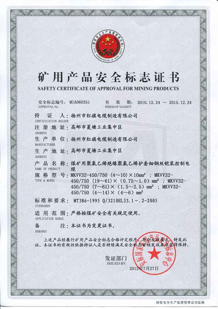 煤礦礦用產(chǎn)品安全標(biāo)志證書-MKVV32