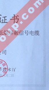 高新技術產品認定證書(礦井監(jiān)控系統(tǒng)用本安型無鹵低煙屏蔽信號電纜)