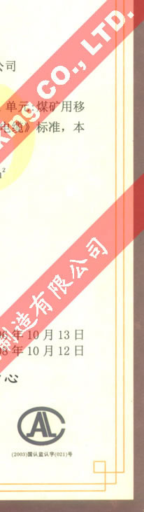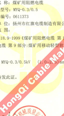 國(guó)家采煤機(jī)械質(zhì)量監(jiān)督檢驗(yàn)中心檢驗(yàn)合格證--煤礦用阻燃電纜(MYQ-0.3/0.5)