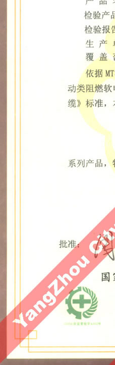 國家采煤機械質量監(jiān)督檢驗中心檢驗合格證--煤礦用阻燃電纜(MZ-0.3/0.5)