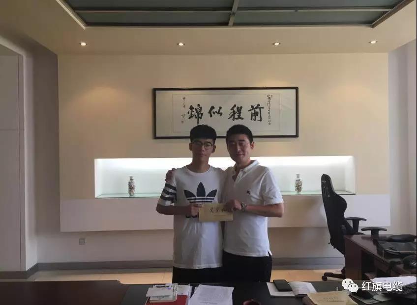 2018年7月30日,揚(yáng)州市紅旗電纜集團(tuán)為2018年考取重點(diǎn)院校的公司雙職工路桂林、葉宏蘭之子路寶健發(fā)放了獎(jiǎng)學(xué)金4000元,送上公司對(duì)員工家庭的一份關(guān)愛和祝福。集團(tuán)總裁陳冠瑜先生親自為其頒發(fā)了獎(jiǎng)學(xué)金,祝福他在以后的人生道路上前程似錦,同時(shí)也以一個(gè)過來人的身份對(duì)其在今后的求學(xué)生涯提出了寶貴的意見和殷切的期盼。