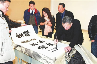 這次筆會(huì)是由高郵市工商聯(lián)、高郵市總商會(huì)主辦,由揚(yáng)州市紅旗電纜制造有限公司、春色滿園農(nóng)業(yè)發(fā)展有限公司承辦。筆會(huì)特地邀請了中國書法家協(xié)會(huì)會(huì)員趙萬和、葛長臻,中國美術(shù)家協(xié)會(huì)會(huì)員張建華,上海市書法家協(xié)會(huì)會(huì)員董曉迅,當(dāng)代著名職業(yè)陶刻家熊立新,揚(yáng)州市美協(xié)理事張研等。書畫家們用他們的筆墨為美麗高郵書畫,為美麗菱塘?xí)嫞鼮樽龀龀删偷募t旗電纜公司、春色滿園農(nóng)業(yè)發(fā)展有限公司書畫。