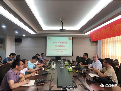6月17日,徐州市產品質量監(jiān)督檢驗中心(江蘇省質檢院)專家崔祥柱、無錫市明珠電纜有限公司專家馮耀才、揚州市市場質量監(jiān)督管理局產品質量處處長田雨組成專家組蒞臨紅旗電纜公司進行生產許可證換證現場審查。紅旗電纜公司總經理陳冠瑜、副總經理曾廣彬以及各部門負責人配合專家組審核。